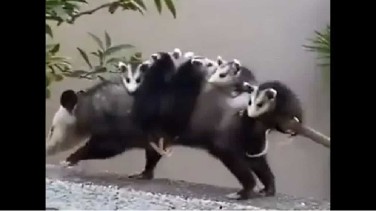 (viral video of mother opossum with 5 babies)