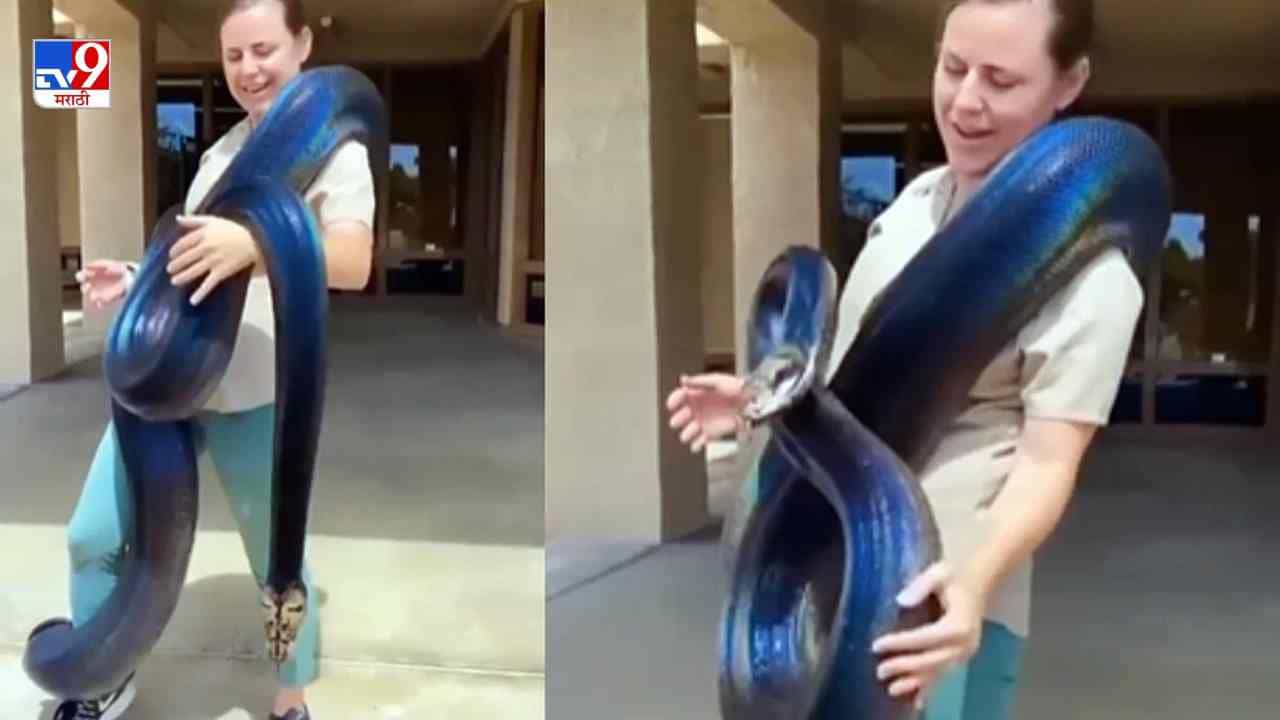 Video: महाकाय अजगर गळ्यात घालून महिलेचा स्टंट, नेटकरी म्हणाले, बाई जपून, अजगराचा भरवसा नाय!