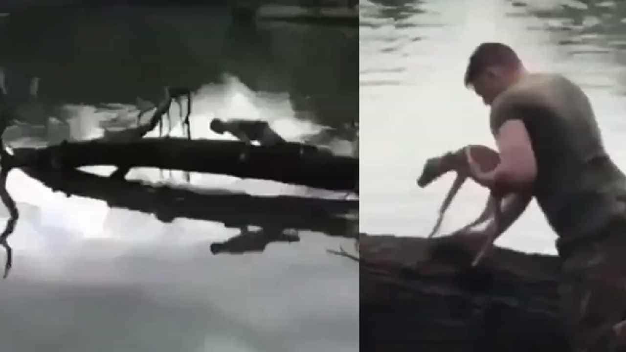 एक व्हिडिओ सोशल मीडियावर मोठ्या प्रमाणात व्हायरल होत आहे. या व्हिडिओमध्ये एक माणूस नदीत बुडणाऱ्या हरणाच्या पिलाला वाचवताना दिसत आहे, आणि आपला जीव पणाला लावत आहे. हा व्हिडिओ पाहिल्यानंतर, नक्कीच, तुम्हीही या व्यक्तीचे कौतुक केल्याशिवाय राहणार नाही. हा व्हिडिओ सोशल मीडियावर लोकांना खूप लाईक केला जात आहे. (Viral Video shows a baby deer drowning in the river saved by a man)