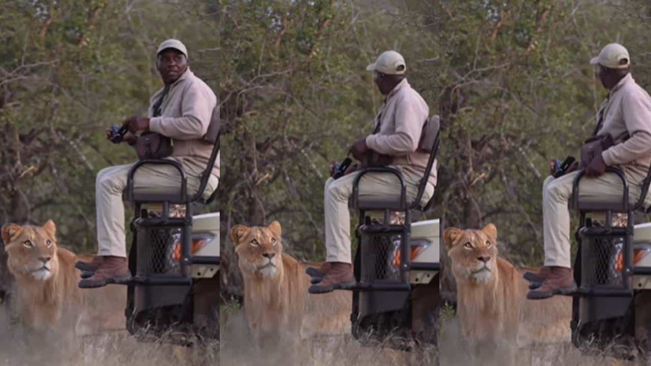 व्हायरल होत असलेला हा व्हिडीओ काही सेकंदांचा आहे, पण त्यात दिसणारे दृश्य खरोखरच श्वास रोखून ठेवणारे आहे. व्हिडीओमध्ये तुम्ही पाहू शकता की, जंगल सफारीदरम्यान कार एका ठिकाणी थांबते. पर्यटक आपले कॅमेरे काढून इकडून तिकडे फोटो काढतात. दरम्यान एक अशी घटना घडते ज्यामुळे हृदयाचे ठोके वाढतात. आपण पाहू शकता की एक सिंह ट्रॅकर सीटवर बसलेल्या रेंजरच्या अगदी जवळ येतो. यानंतर तो इतका घाबरतो की तो आपल्या जागेवरून हलतही नाही. यादरम्यान सिंहाचे डोळे पाहण्यासारखे असतात. मात्र, पुढे काय झाले हे कळत नाही कारण हा व्हिडिओ येथेच संपलेला आहे.