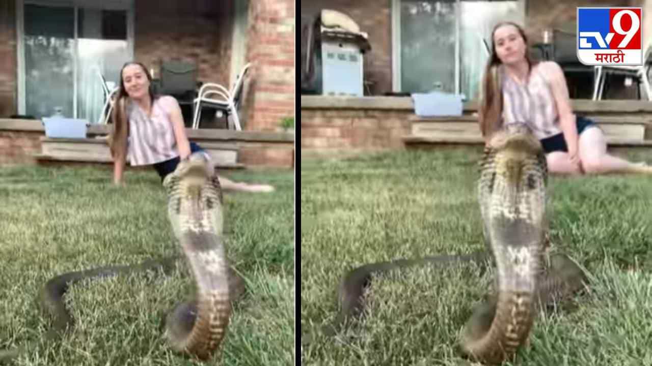 अशी कल्पना करा की तुम्ही तुमच्या लॉनवर बसलेले आहात आणि तेवढ्यात तुम्हाला एक कोब्रा साप तुमच्या समोर बसलेला दिसतो. ज्याने आपला फना काढलेला आहे. तेव्हा तुम्हाची रिएक्शन काय असेल? नक्कीच काहीजण तातडीने त्या जागेवरुन उठतील आणि इकडे तिकडे पळतील. पण असेही काही लोक आहेत जे बहुधा सापांना घाबरत नाहीत. आता हा व्हिडिओ पहा जो सोशल मीडियावर व्हायरल झाला आहे. या व्हिडिओमध्ये एक मुलगी कोब्रा साप समोर बसलेला असताना पोज देत आहे. अनेकांना हा व्हिडीओ पाहून आश्चर्य वाटलं आहे.
