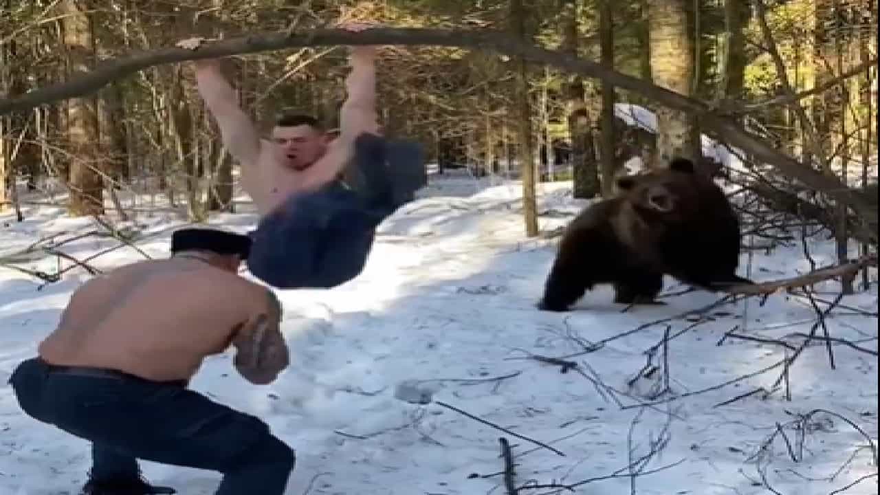 Viral video : दोन मित्रांचं बर्फाळ जंगलात वर्कआऊट, अचानक आला अस्वल, पाहा पुढे नेमकं काय झालं?