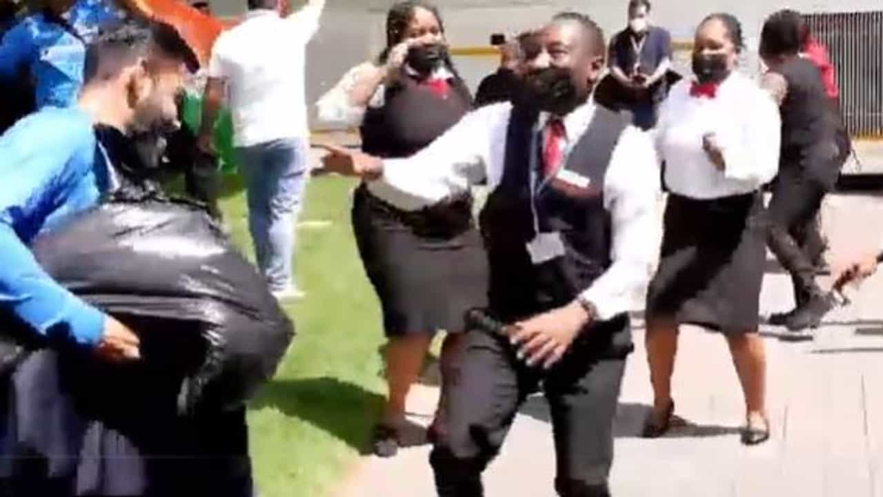 विराट कोहलीबरोबर हॉटेलचा स्टाफई नाचू लागल्यानंतर द्रवीडला दम धरवला नाही, तोही या व्हिडिओत मागे कोपऱ्यात नाचताना दिसून येत आहे. कोरोनाकाळात टीम इंडियाच्या या दौऱ्याबद्दल सुरूवातीला धाकधूक निर्माण झाली होती, मात्र पक्के नियोजन करत टीम इंडिया साऊथ आफ्रिकेत दाखल झाली आणि पहिला सामना खेळून जिकलाही, त्यामुळे क्रिकेट फॅन्ससह खेळाडुंमध्येही उत्साहाचे वातावरण दिसून येत आहे. त्यामुळेच क्रिकेटच्या चाहत्यांनी हा व्हिडिओ व्हायरल केला आहे.