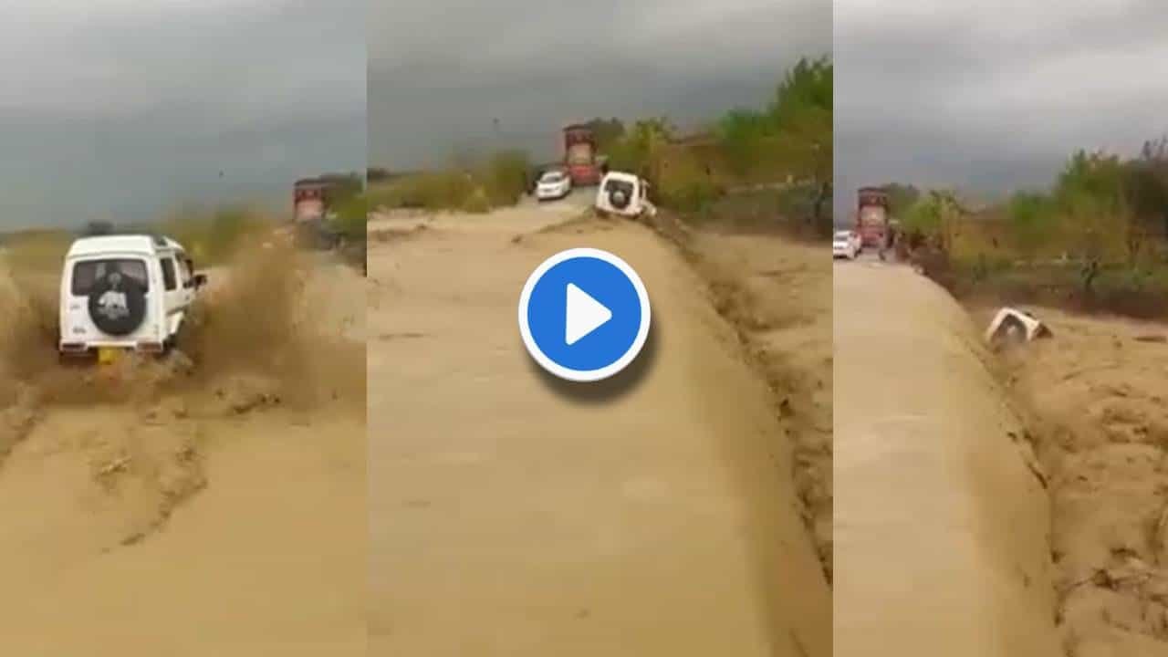 एकूण 30 सेकंदांचा हा व्हिडीओ असून या व्हिडीओमध्ये रस्त्याच्या एका बाजूला गाड्या थांबल्याचं दिसून आलंय. एक सफेद रंगाची जीप या व्हिडीओत पूल पार करताना दिसते. त्यानंतर ही जीप बघता बघता पुलावरुन थेट पुराच्या पाण्यात कोसळते.
