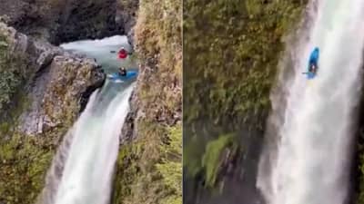 ट्विटरवरती हा व्हिडीओ चांगलाचं व्हायरल झाला आहे. धबधब्याच्या ठिकाणी वेगात असलेल्या पाण्यासोबत राफ्टिंग सुरु असल्याचं पाहायला मिळत आहे. उंच असलेल्या टेकडीवरुन खाली पाणी पडतं आहे. तिथं कोणलाही भीती वाटेल, परंतु राफ्टिंग करणाऱ्या लोकांना अजिबात भीती नसल्याचं त्या व्हिडीओतून स्पष्ट झालं आहे. विशेष म्हणजे ती व्यक्ती पाण्याच्या वेगाने खाली पाण्यात पडली आहे. काहीवेळ ती व्यक्ती गायब झाली असं वाटतंय, परंतु काही वेळाने ती व्यक्ती धबधब्याच्या खालच्या बाजूला दिसून येत आहे.