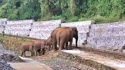 Elephant Video : हत्तींचा कळप रेल्वे ट्रॅकच्या बाजूला असलेला रस्ता ओलांडण्याचा प्रयत्न करत असल्याचा व्हिडिओ ऑनलाइन व्हायरल झाला. ही घटना तामिळनाडू(Tamilnadu)मधल्या निलगिरी इथं घडली आणि ही क्लिप IAS अधिकारी सुप्रिया साहू यांनी त्यांच्या अधिकृत ट्विटर अकाउंटवर शेअर केली. मात्र, प्राण्यांना ओलांडण्यासाठी सुरक्षित रस्ता उपलब्ध करून देण्यासाठी रेल्वे मंत्रालया(Ministry Of Railways)नं तातडीनं कारवाई केली आहे. सध्या व्हायरल होत असलेल्या व्हिडिओमध्ये हत्तींचा कळप रेल्वे (Rail) रुळांच्या भिंती ओलांडण्यासाठी धडपडताना दिसत आहे. त्यांना पलीकडे असलेल्या जंगलात जायचं होतं पण कुंपणामुळे ते शक्य झालं नाही. काही सेकंदांनंतर, कळप रुळावरून वर चढून जंगलात प्रवेश करताना दिसतो. सुदैवानं रुळावरून कोणतीही ट्रेन जात नव्हती. ही एक निराशाजनक बाब होती.