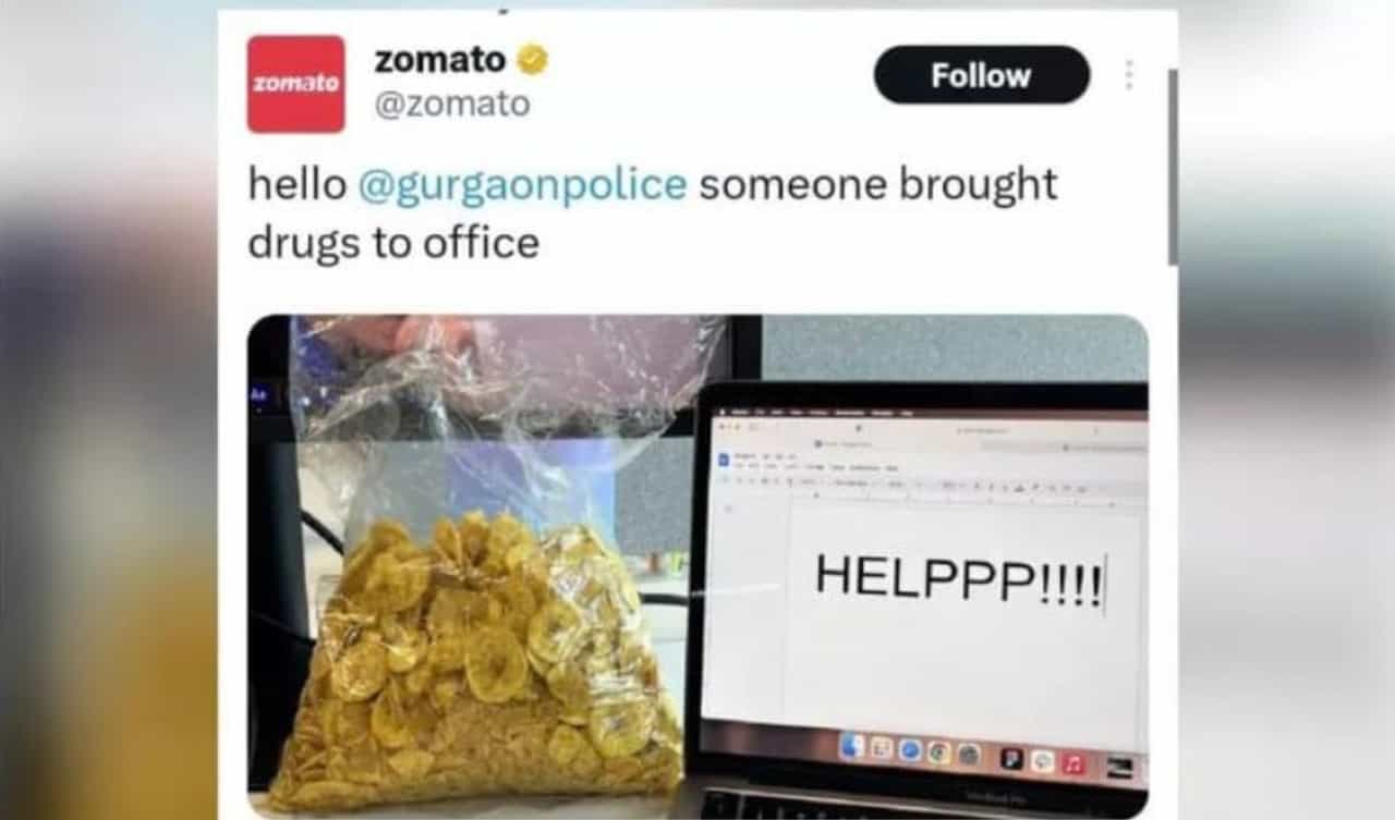 झोमॅटोने त्यांच्या ट्वीटमध्ये लिहीले की हॅलो @gurgaonpolice, कोणी तरी ऑफीसमध्ये ड्रग्स आणले आहे. म्हणजेच केळ्याचे चिप्स खूपच नशीले असतात असा दावा त्यांनी केला आहे. या पोस्टच्या स्क्रीनशॉट शेअर करीत रवी हांडा यांनी झोमॅटोवर टीका केली आहे. एका मोठ्या कंपनीने बेजबाबदारपणा दाखविला आहे. त्यानंतर सुमारे एक तासानंतर झोमॅटोने त्याच्याशी सहमती व्यक्त करीत त्यांना उत्तर दिले आहे.