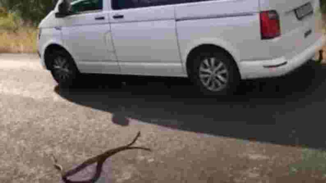 VIDEO | भरधाव कारवर जेव्हा अजगर उडी घेतो तेव्हा… ; व्हिडीओ पाहून तुम्हालाही धक्का बसेल