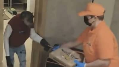 या व्हिडिओमध्ये एक पिझ्झा डिलिव्हरी बॉय ग्राहकाच्या घरी जाऊन पिझ्झा डिलिव्हरी करताना आणि दारावरची बेल वाजवताना दिसत आहे.