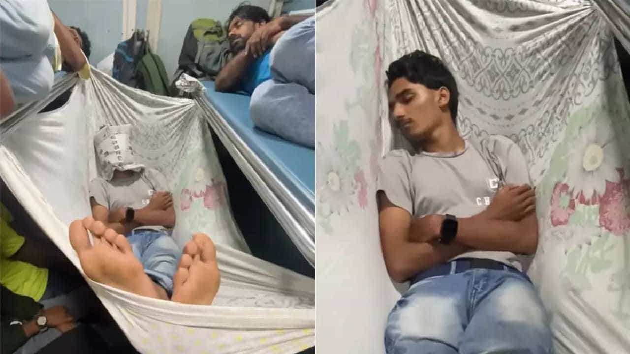VIDEO | रेल्वेत प्रवास करताना बसायला जागा मिळेना, मग तरुणाने केला जुगाड, लोकांनी डोक्याला लावला हात