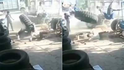 हा व्हिडीओ सोशल मीडियावर चांगलाचं व्हायरल झाला आहे. एका ट्रकचा टायरचा काही पंक्चर काढत आहेत. त्या व्हिडीओत दिसत असल्याप्रमाणे सगळे मिळून काहीतरी समस्या दूर करत असावेत असं वाटतंय. परंतू पुढच्या काही क्षणात तिथं स्फोट झाला आहे. तीन लोकांना जखमी झाली आहे.