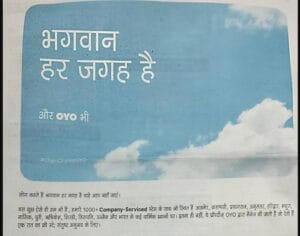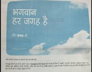 हिंदी आणि इंग्रजी वृत्तपत्रांमध्ये छापलेल्या जाहिरातीमध्ये दिलेली टॅगलाइन आहे, “देव सर्वत्र आहे” “आणि OYO सुद्धा” असं त्या खाली लिहीण्यात आलं आहे. खरंतर, कंपनीला OYO च्या व्यापक उपस्थितीचा प्रचार करायचा होता. पण देवासोबत केलेली ही तुलना अनेक हिंदू समूहांना आवडली नाही. यामुळे आपल्या धार्मिक भावनांचा अपमान झाल्याचे सांगत त्यांनी विरोध सुरू केला आहे. अनेकांनी तर ओयोचा लोगो हा भगवान जगन्नाथ यांच्या डोळ्याशी आणि कपाळाशी जोडला आणि ओयो छुप्या पद्धतीने हिंदूंच्या भावना दुखावत असल्याचाही केला आहे.