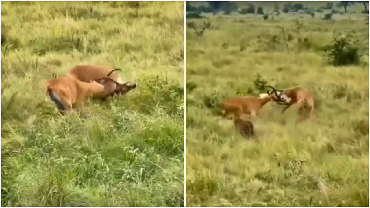 Viral video : दोघांच्या भांडणात तिसऱ्याचा लाभ! दोन हरणांची लढाई सुरू असते, तेवढ्यात…