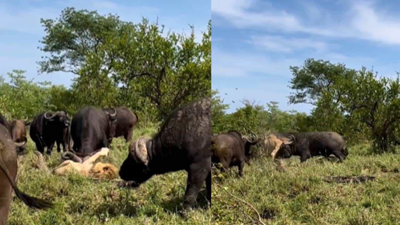 यूझरच्या मते, दक्षिण आफ्रिकेच्या जंगलात डार्क माने अवोका नावाचा हा सिंह म्हशींच्या कळपात अडकतो आणि आपल्या आयुष्यासाठी संघर्ष करतो. या लढाईत सिंहाला जबर दुखापत झालीये. सुमारे 15 मिनिटे म्हशी सिंहाला फेकत राहिल्या.
