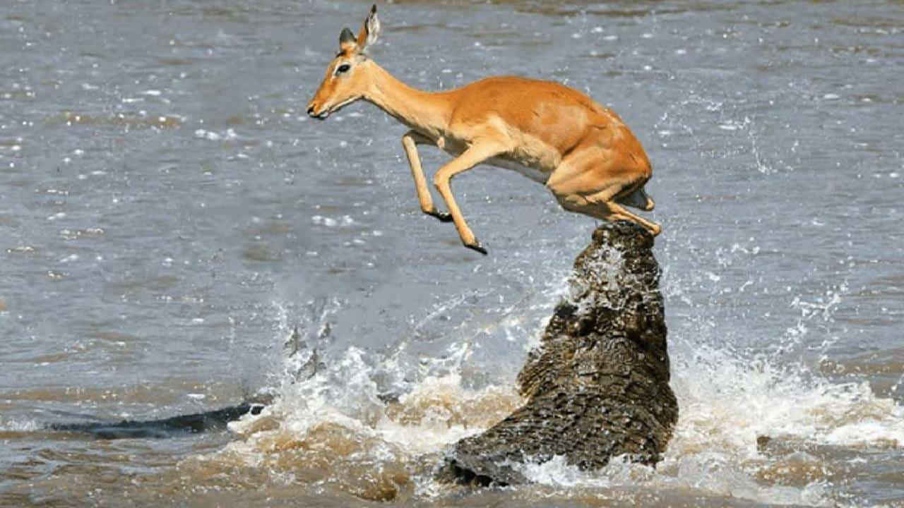 हरणाच्या चलाखपणामुळे मगरीने सुध्दा हार मानली