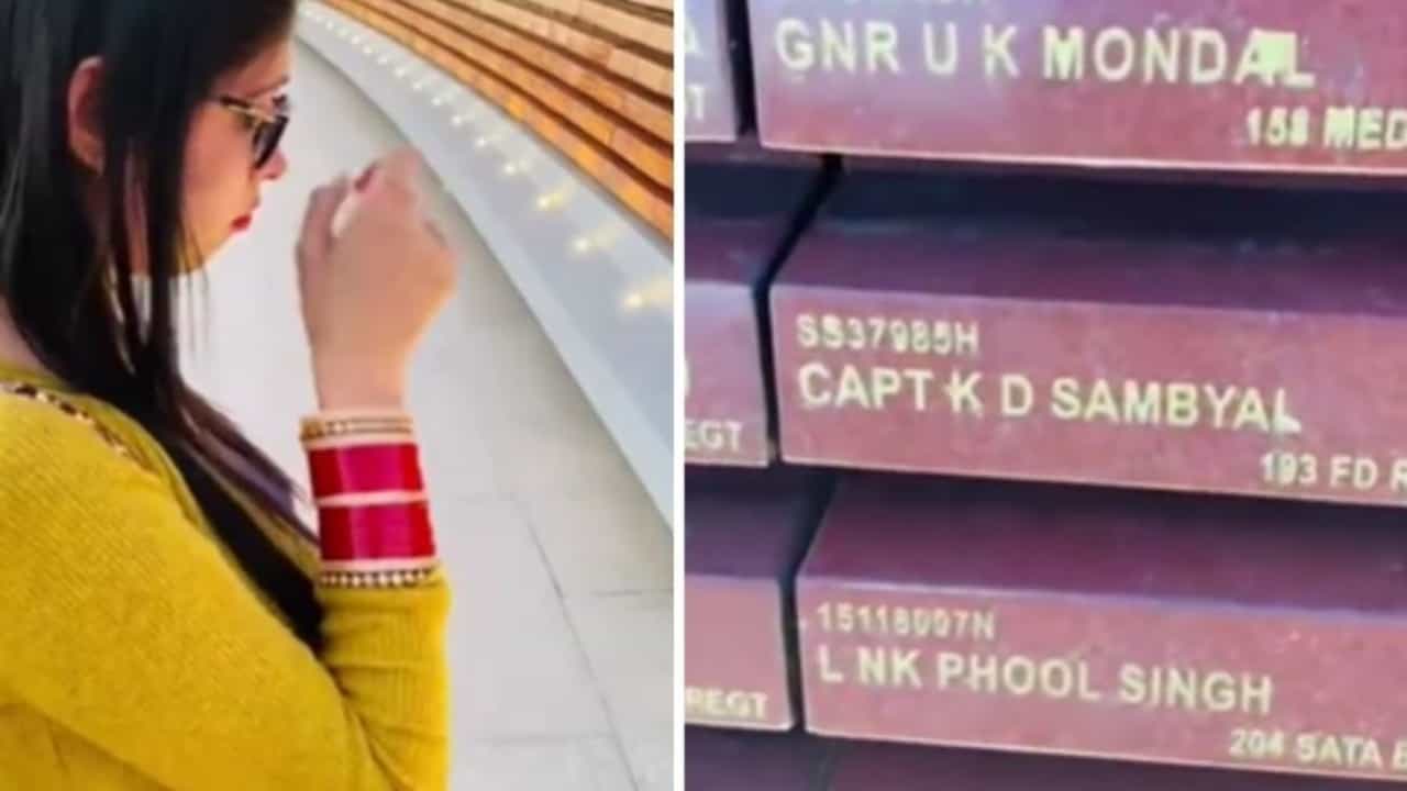 National War Memorial : दिल्लीतील नॅशनल वॉर मेमोरियलशी संबंधित एक व्हिडिओ सोशल मीडियावर (Social media) मोठ्या प्रमाणात व्हायरल होत आहे, जो पाहून तुम्ही भावुक व्हाल. व्हिडिओमध्ये येथील शहीद जवानांच्या नावांमध्ये तिचा भाऊ कॅप्टन केडी संब्याल (Captain KD Sambyal) यांचे नाव पाहून एक महिला रडते (Crying) आहे. त्याच्या डोळ्यातून अश्रू वाहताना दिसतात. ही महिला आपल्या पतीसोबत राष्ट्रीय युद्ध स्मारकाला भेट देण्यासाठी आली होती. मात्र शहीद जवानांच्या नावांमध्ये तिच्या भावाचे नाव पाहून ती स्वत:ला रोखू शकली नाही. महिलेचा भाऊ कॅप्टन केडी संब्याल हा 193 फील्ड रेजिमेंटचा भाग होता. त्याची तैनाती सांबा, जम्मू-काश्मीरमध्ये होती. शगुन असे या महिलेचे नाव असून तिच्या पतीने हा व्हिडिओ इन्स्टाग्रामवर शेअर केला आहे. त्यांनी कॅप्शनमध्ये लिहिले आहे की, आज अचानक आम्ही दिल्लीला जाण्याचा प्लॅन केला. कॅनॉट प्लेसला भेट दिल्यानंतर मी माझ्या पत्नीला सांगितले की चला नॅशनल वॉर मेमोरियलला जाऊ या.