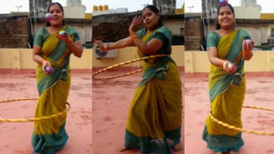 मुंबई: तुम्ही जगलिंग पाहिलंय? हुला हुपिंग? डान्स? हे सगळं कधी तुम्ही एकत्र पाहिलंय का? म्हणजे एखादा माणूस एकदम बेस्ट जगलिंग करू शकतो. एखादा एकदम भारी हुला हुपिंग करू शकतो. तर कुणी एकदम बेस्ट डान्स करू शकतो. हे सगळं आपण वेगवेगळं पाहिलेलं आहे. पण कधी एकत्र पाहिलंय का? तुम्हाला जर आम्ही सांगितलं की जगलिंग, हुला हुपिंग, डान्स हे सगळं एखादी महिला एकत्र करू शकते तर? त्याहीपेक्षा हे सगळं ती महिला साडी नेसून करत असेल तर? आहे ना इंटरेस्टिंग? होय एक व्हिडीओ व्हायरल होतोय ज्यात एक महिला साडी नेसून हे टॅलेंट दाखवतेय.