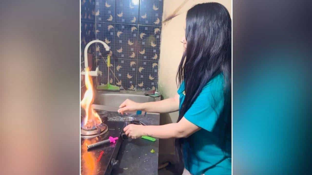 सोशल मीडियावर तुफान व्हायरल होत असलेल्या या व्हिडिओमध्ये तुम्ही पाहिलात तर एक महिला हातात चिमटा घेऊन किचनमध्ये उभी आहे. त्यानंतर ही महिला किचन मध्ये असलेला गॅस चालू करते आणि त्या आगीवर चिमटा गरम करते आणि स्वतःच्या केसांवर हेअर स्ट्रेटनरप्रमाणे फिरवते. मात्र हा देशी जुगाड करताना या महिलेचे केस काही स्ट्रेट होत तर नाही, पण या आगळ्यावेगळ्या जुगाडांमुळे जे काही झालं त्याचा या महिलेने कधी स्वप्नात सुद्धा विचार केला नसेल.