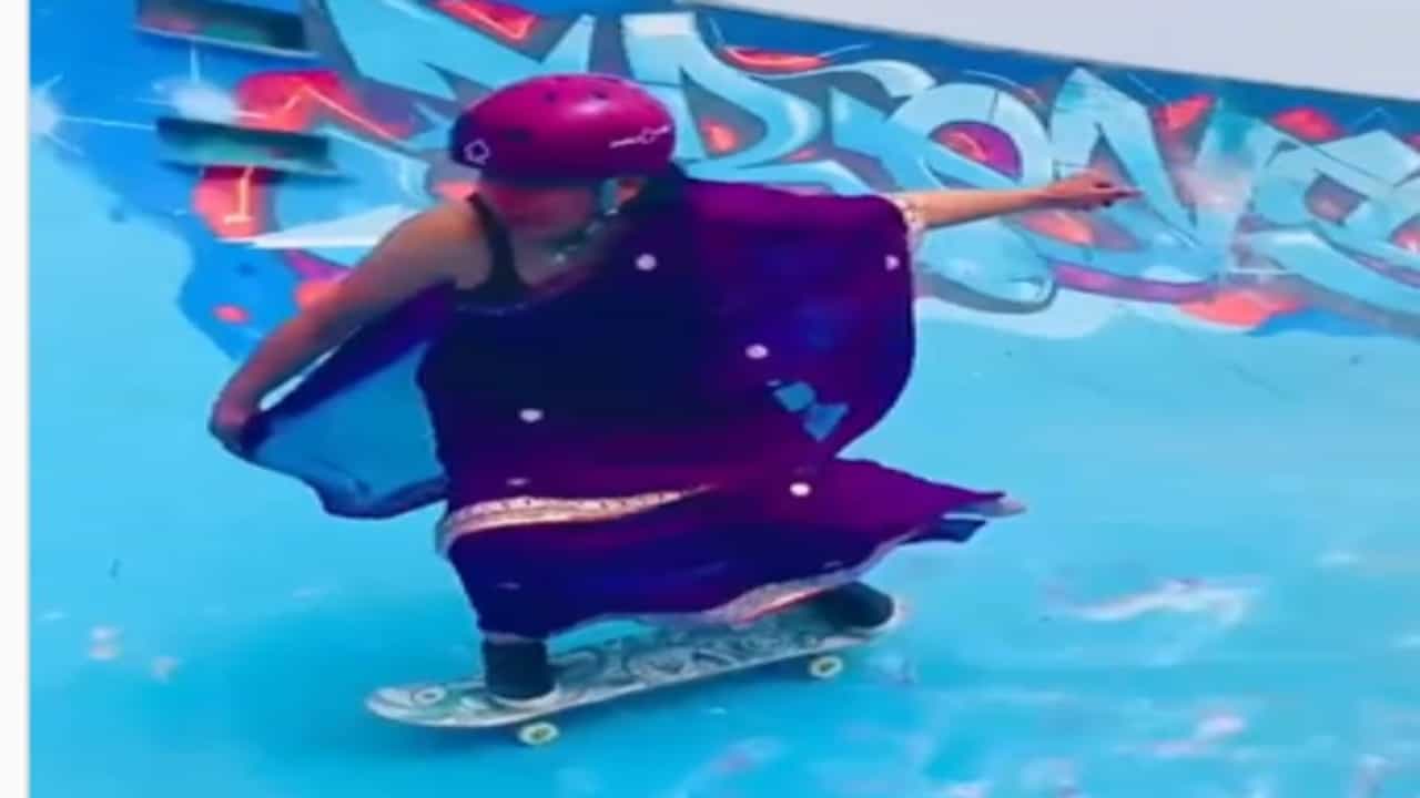 सध्या व्हायरल होत असलेल्या व्हिडीओमध्ये ही महिला स्केटिंग करत आहे. इन्स्टाग्रामवर या महिलेचे स्केटिंग करतानाचे अनेक व्हिडीओ उपलब्ध आहेत. मात्र, सध्या या महिलेचा एक विशेष व्हिडीओ व्हायरल होत आहे. या व्हिडीओमध्ये महिलेने निळ्या रंगाची साडी परिधान केलेली आहे. तसेच डोक्यावरसुद्धा निळेच हेल्मेट घातले आहे. ती अतिशय मजेत आमि अस्खलीतपणे स्केटिंग करत आहे.