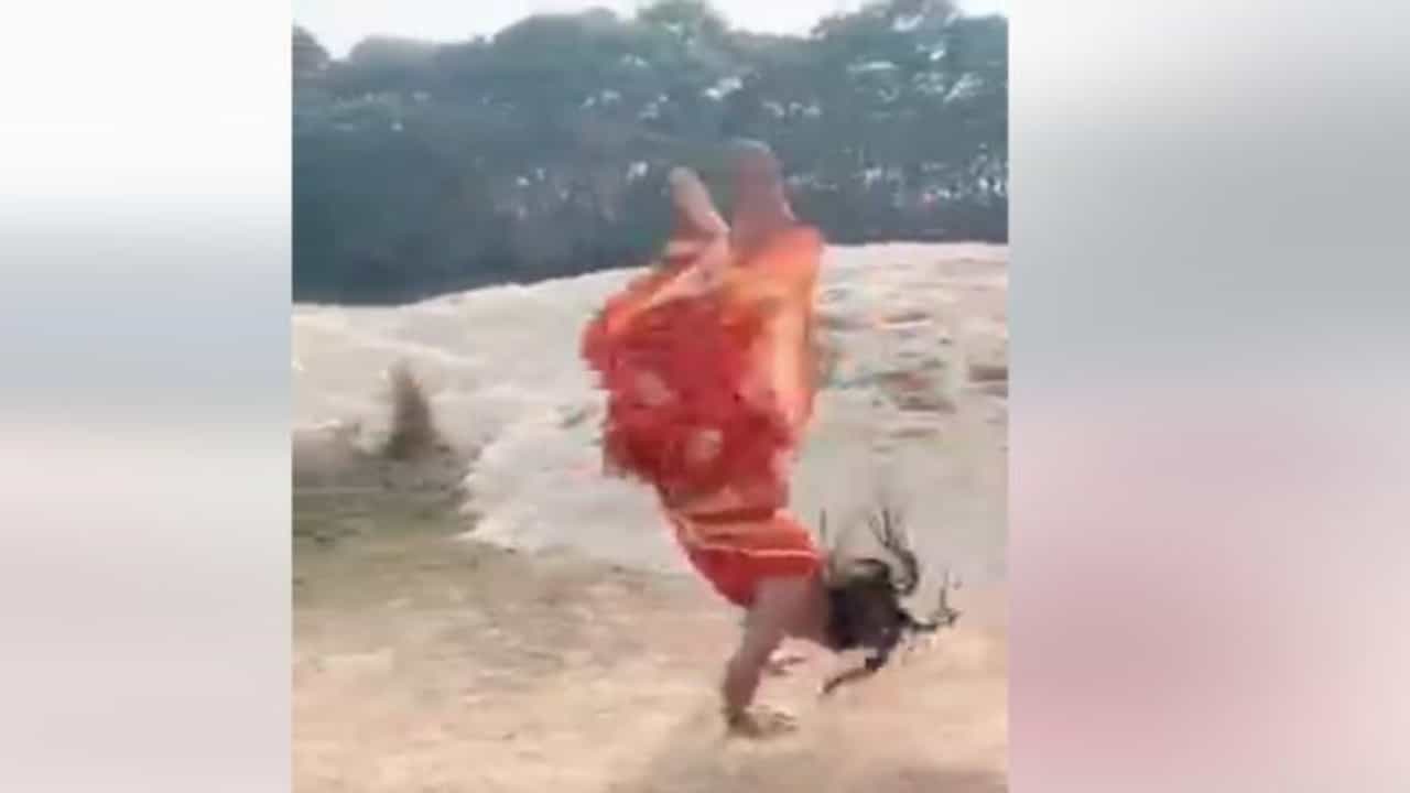 Video | लाल साडीत महिलेच्या कोलांट उड्या, सोशल मीडियावर व्हिडीओ व्हायरल