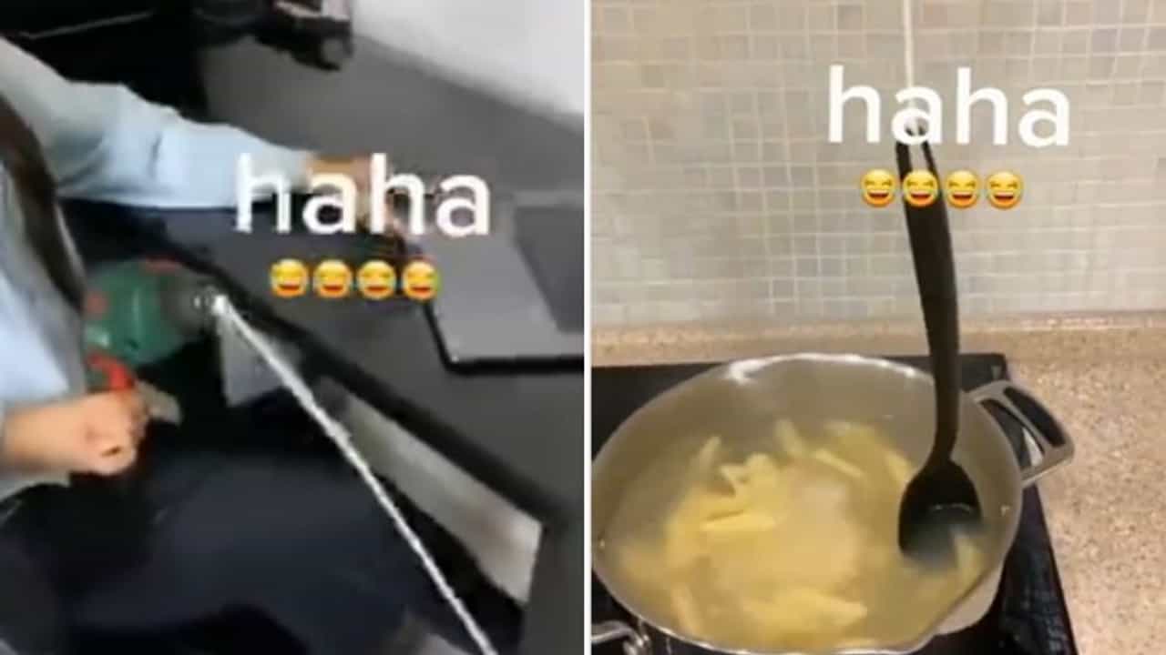 ही महिला वर्क फ्रॉम होम करत असल्यामुळे ती एकाच वेळी दोन कामे करत आहे. एका हाताने ऑफिसचे काम तर दुसऱ्या हाताने ही महिला किचनमध्ये काहीतरी तळते आहे. त्यासाठी या महिलेने ड्रिल मशीनचा उपयोग केला आहे. तिने ड्रिल मशीनला एक लांब दोरी बांधली आहे. ही दोरी संपूर्ण घरात फिरवून नंतर ती एका चम्मचला बांधण्यात आली आहे. ज्या चम्मचला ही दोरी बांधण्यात आली आहे, तो चम्मच बरोबर पातेल्यामधील पदार्थ हालवतो आहे.