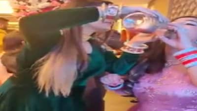 विशेष म्हणजे व्हिडीओतील दोन्ही महिला अत्यंत आनंदी दिसत आहेत. या दोनपैकी एका महिलेच्या हातामध्ये दारूची बॉटल दिसत आहे. थोड्या वेळाने हासत हासत ही महिला समोरच्या दुसऱ्या महिलेला दारू पाजत आहे. दारुचा घोट पिल्यानंतर दुसऱ्या महिलेने दारूची बॉटल आपल्या हातात घेतली आहे. त्यानंतर ही महिला आपल्या पहिल्या मैत्रिणीला दारू पाजत आहे.