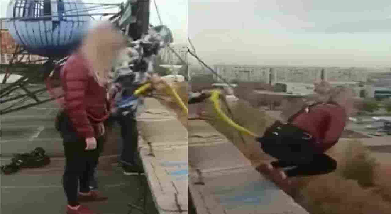 (women fall down from hotel terrace while bungee jumping video went viral on social media)
