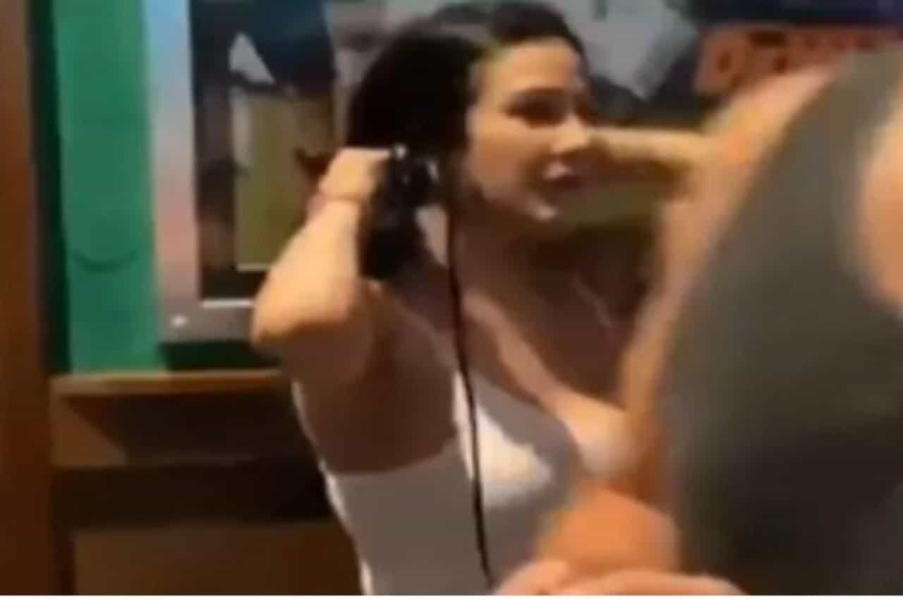 (women style her hair in restaurant video went viral on social media)