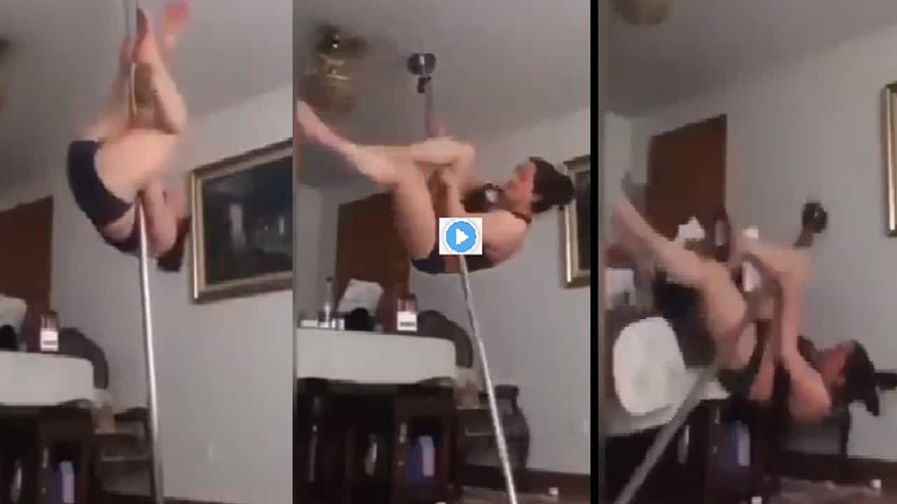 (women while pole dancing fell down video goes viral on social media)