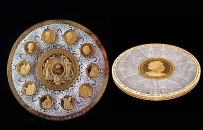 स्काय न्यूजने दिलेल्या बातमीनूसार या नाण्याचा आकार बास्केट बॉलच्या आकाराचा आहे. या नाण्याचा व्यास 9.6 इंच इतका आहे. या नाण्यावर दिवंगत सम्राटाचं छायाचित्रेही आहेत. प्रसिद्ध चित्रकार मॅरी गिलिक, अर्नोल्ड माचिन, राफेल मॅकलॉफ आणि इयान रॅंक-ब्रॉडली यांनी ही चित्रे काढली आहेत. या नाण्याला तयार करण्यासाठी भारत, जर्मनी, युके, श्रीलंका आणि सिंगापूरच्या कलाकारांनी हातभार लावला आहे. या नाण्याला ईस्ट इंडीया कंपनीचे भारतीय वंशाचे सीईओ संजीव मेहता यांनी जारी केले आहे.