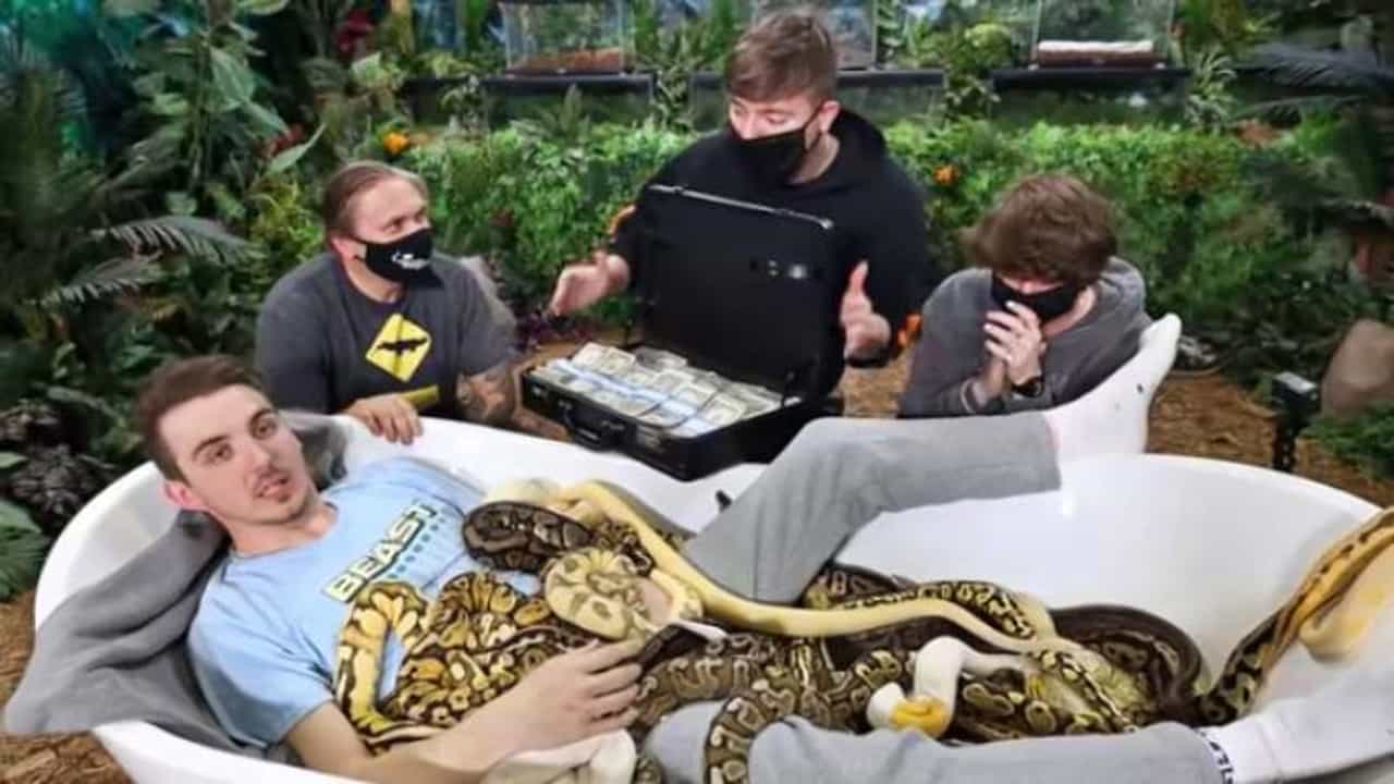 Youtuber Mr Beast viral video challenging friends to sit with snake