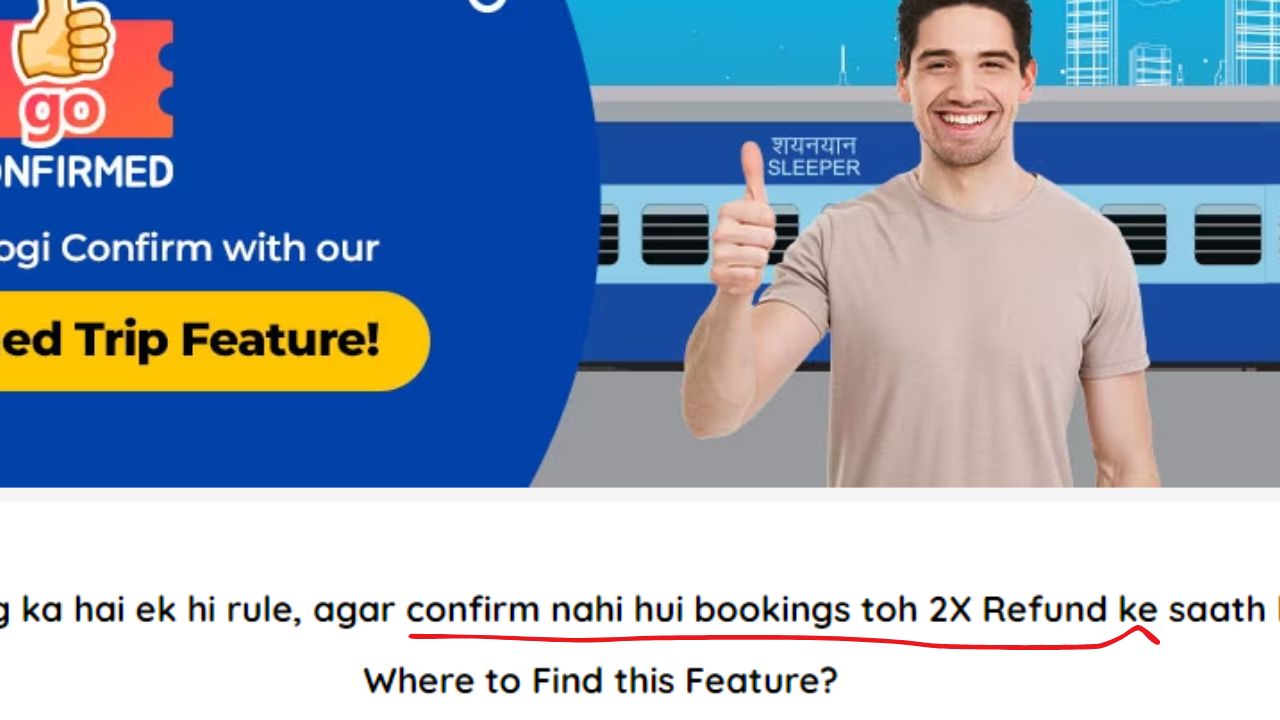 ट्रेन तिकीट बुक करण्यासाठी तुम्हाला गोआयबीबी वेबसाईट किंवा अॅपचा वापर करावा लागतो. त्या अॅप किंवा वेबसाईटवरुन वेटींग तिकीट बुक करताना ‘गोकन्फर्म्ड ट्रिप’ तिकिटाचा पर्याय निवडावा लागणार आहे. त्यानंतर तिकीट कन्फर्म होण्याच्या संधी वाढणार आहे. चार्ट तयार झाल्यानंतर वेटींग तिकीट कन्फर्म झाले नाही तर तुम्हाला दुप्पट पैसे परत मिळणार आहे. कंपनीकडून ही दुप्पट पैसे तुमच्या खात्यात जमा केले जाणार आहे.