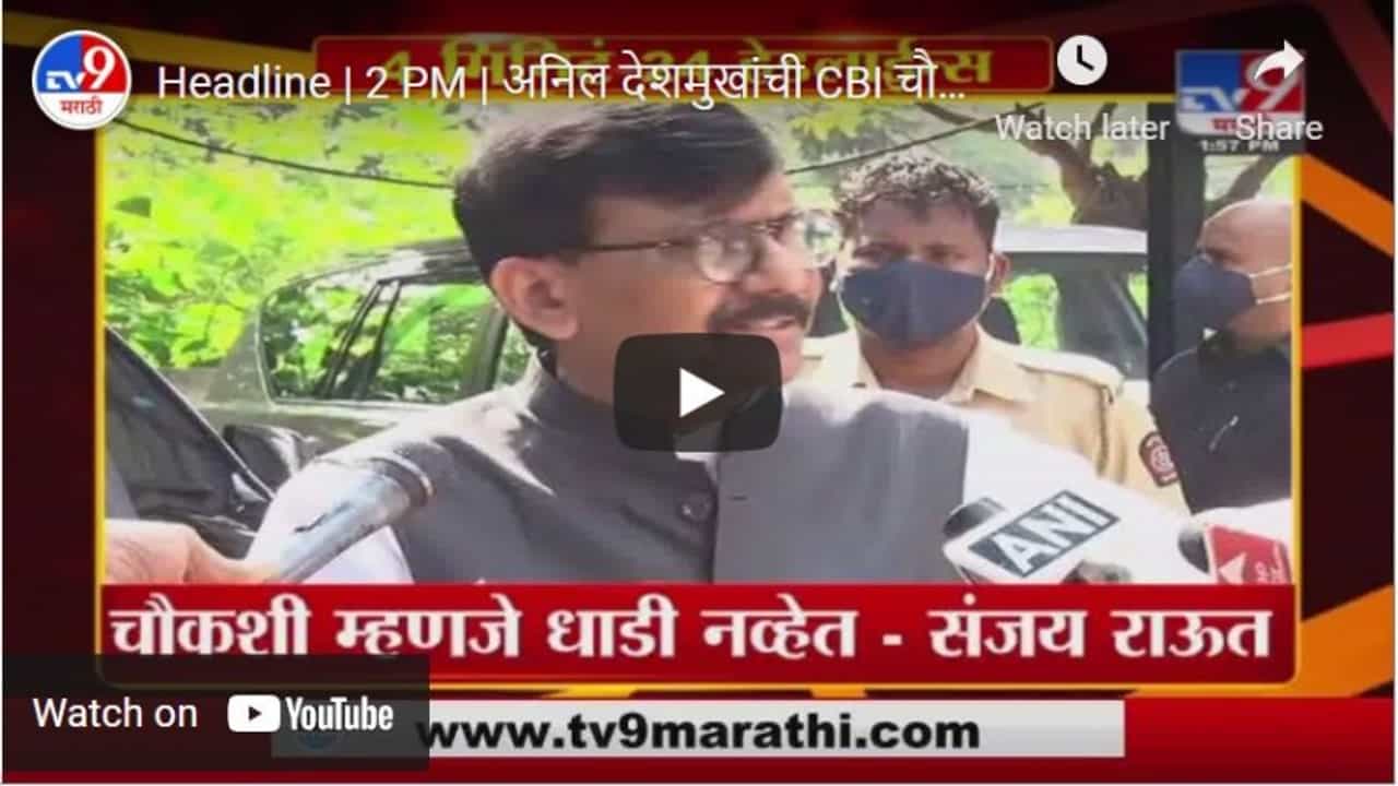 Headline | 2 PM | अनिल देशमुखांची CBI चौकशी म्हणजे धाडी नव्हेत : संजय राऊत