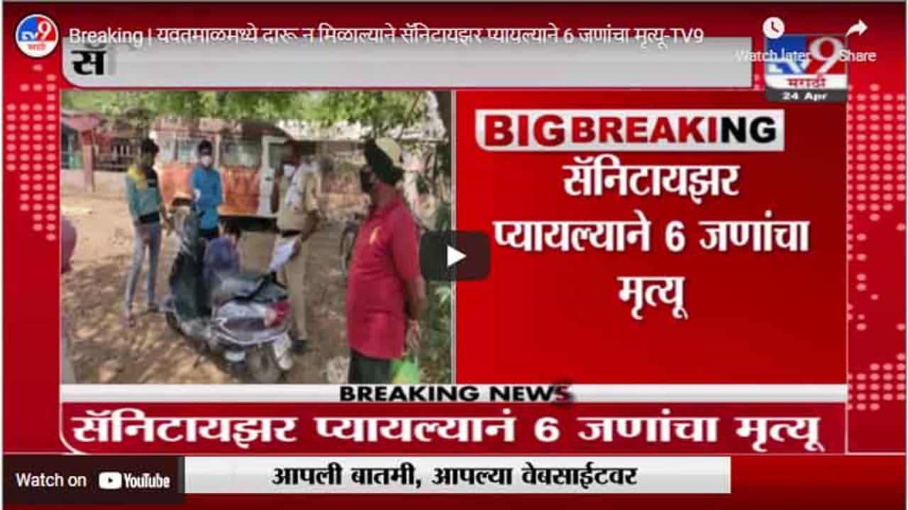 Breaking | यवतमाळमध्ये दारू न मिळाल्याने सॅनिटायझर प्यायल्याने 6 जणांचा मृत्यू