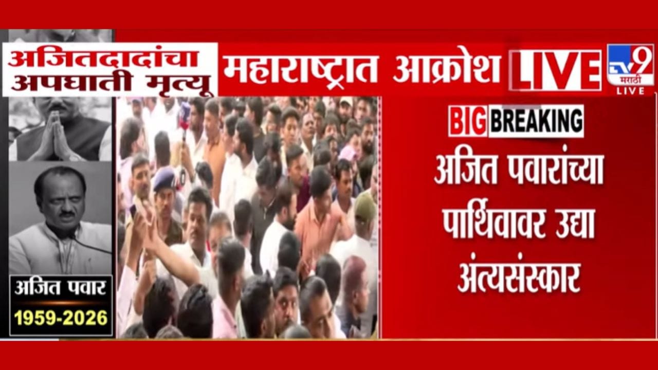 बारामतीतील शारदा प्रांगणात अजित पवारांचे पार्थिव अंतिम दर्शनासाठी ठेवण्यात येणार आहे. त्यांचे अंत्यसंस्कार उद्या होणार असून पंतप्रधान नरेंद्र मोदी आणि गृहमंत्री अमित शाह उपस्थित राहणार आहेत. अजित पवार हे शिस्तबद्ध आणि वेळ पाळणारे नेते म्हणून ओळखले जात होते. कार्यकर्त्यांमध्ये शोककळा असली तरी ते शिस्त पाळत आहेत.