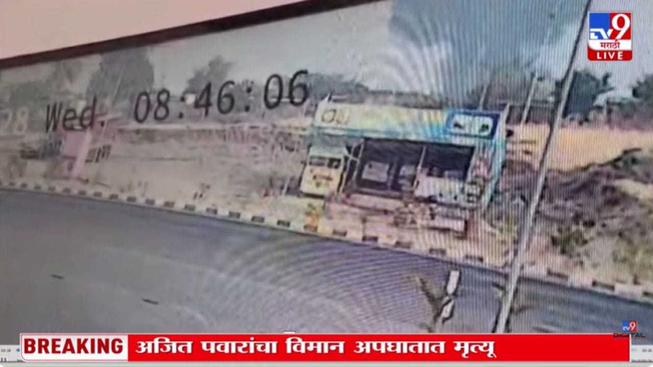 बारामती येथे उपमुख्यमंत्री अजित पवार यांच्या विमानाचा भीषण अपघात होऊन त्यांचा दुर्दैवी मृत्यू झाल्याचे सीसीटीव्ही फुटेज समोर आले आहे. सकाळी 8 वाजून 46 मिनिटांनी विमान धावपट्टीजवळच्या दरीमध्ये कोसळले आणि मोठा स्फोट झाला. या दुर्घटनेत एकूण पाच जणांचा मृत्यू झाला असून, घटनेची सखोल चौकशी सुरू आहे.