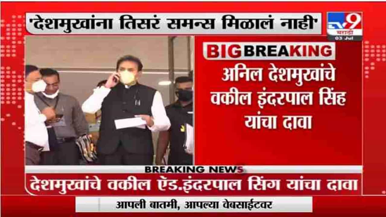 Breaking | अनिल देशमुखांना ईडीकडून तिसरं समन्स मिळालं नाही, देशमुखांच्या वकीलांचा दावा