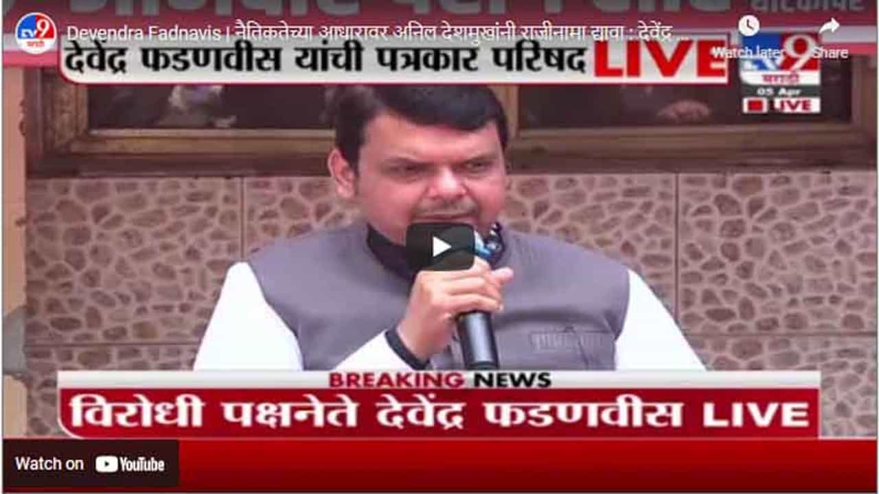 Devendra Fadnavis | नैतिकतेच्या आधारावर अनिल देशमुखांनी राजीनामा द्यावा : देवेंद्र फडणवीस