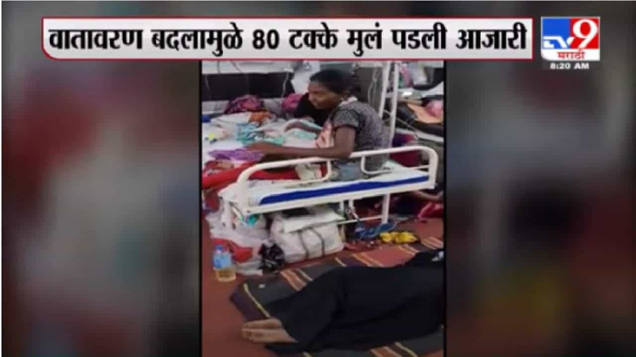 रुग्णालयातील तुफान गर्दीचा व्हिडीओ समोर आला आहे. त्यामध्ये एका बेडवर दोन दोन मुलं झोपल्याचं दिसत आहे. तर बेडच्या खाली मुलांचे पालक, कुटुंबीय आणि नातेवाईकांचीही गर्दी पाहायला मिळत आहे.