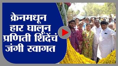 प्रणिती शिंदेंचं ग्रँड वेलकम, क्रेनमधून हार घालून स्वागत