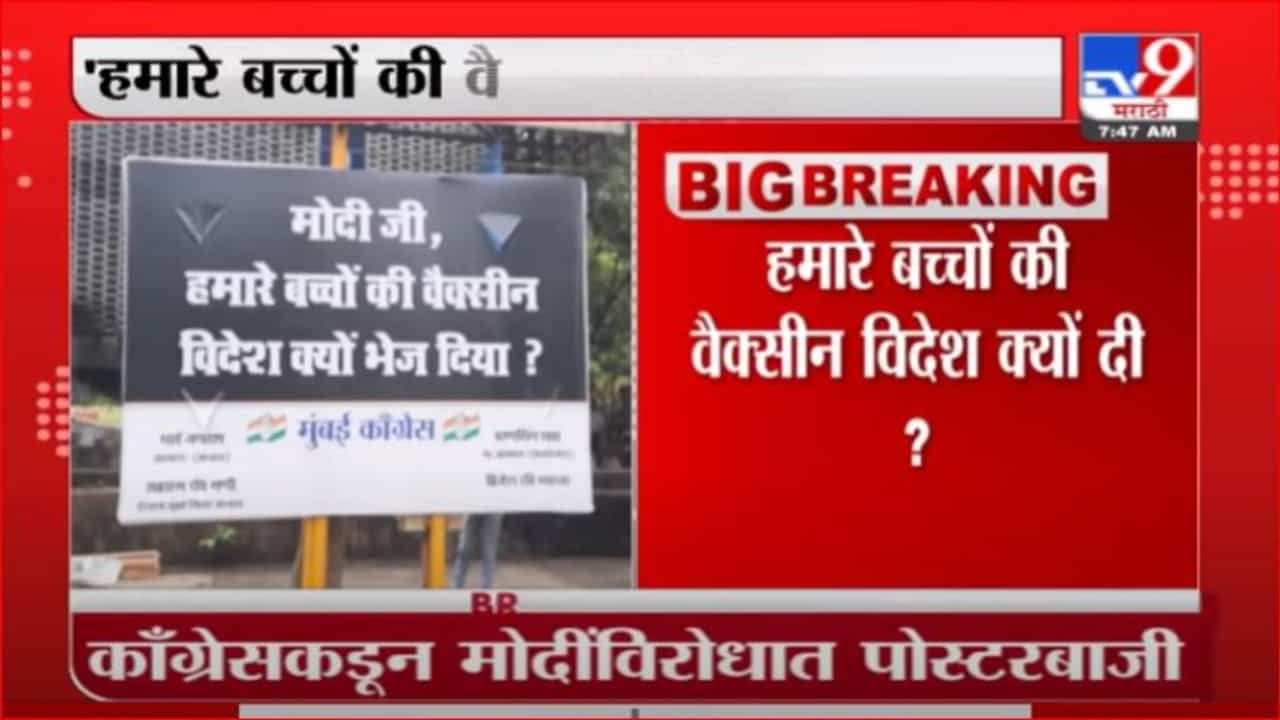 कॉंग्रेसकडून मोदींविरोधात पोस्टरबाजी. काँग्रेस पक्षाने मुंबईच्या घाटकोपर परिसरात हे बॅनर्स लावले आहेत. या बॅनर्सवर मोदीजी आमच्या मुलांची लस परदेशात का पाठवली, असा मजकूर छापण्यात आला आहे.