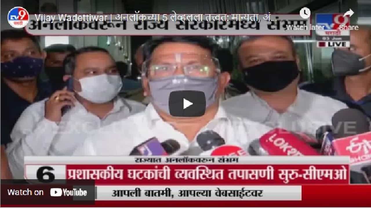 Video | अनलॉकच्या 5 लेव्हलला तत्त्वत: मान्यता, अंतिम निर्णय मुख्यमंत्री घेणार : विजय वडेट्टीवार
