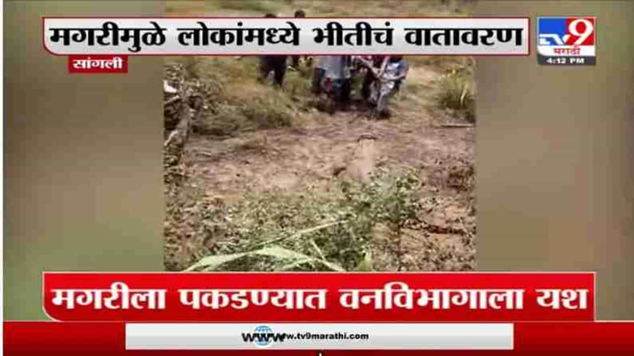 Sangli | सांगलीत मगरीचं दर्शन, मगरीला पकडण्यात प्राणीमित्रांना यश