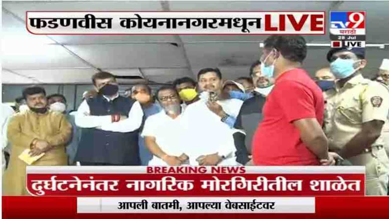 आज साताऱ्यातील पाटण तालुक्यात आंबेघर आणि मोरगिरीमधील पूरग्रस्त गावऱ्यांची भेट घेतली. यानंतर देवेंद्र फडणवीस नुकसानग्रस्त भागाची पाहणी करण्यासाठी कोयनानगरमध्ये दाखल झाले.