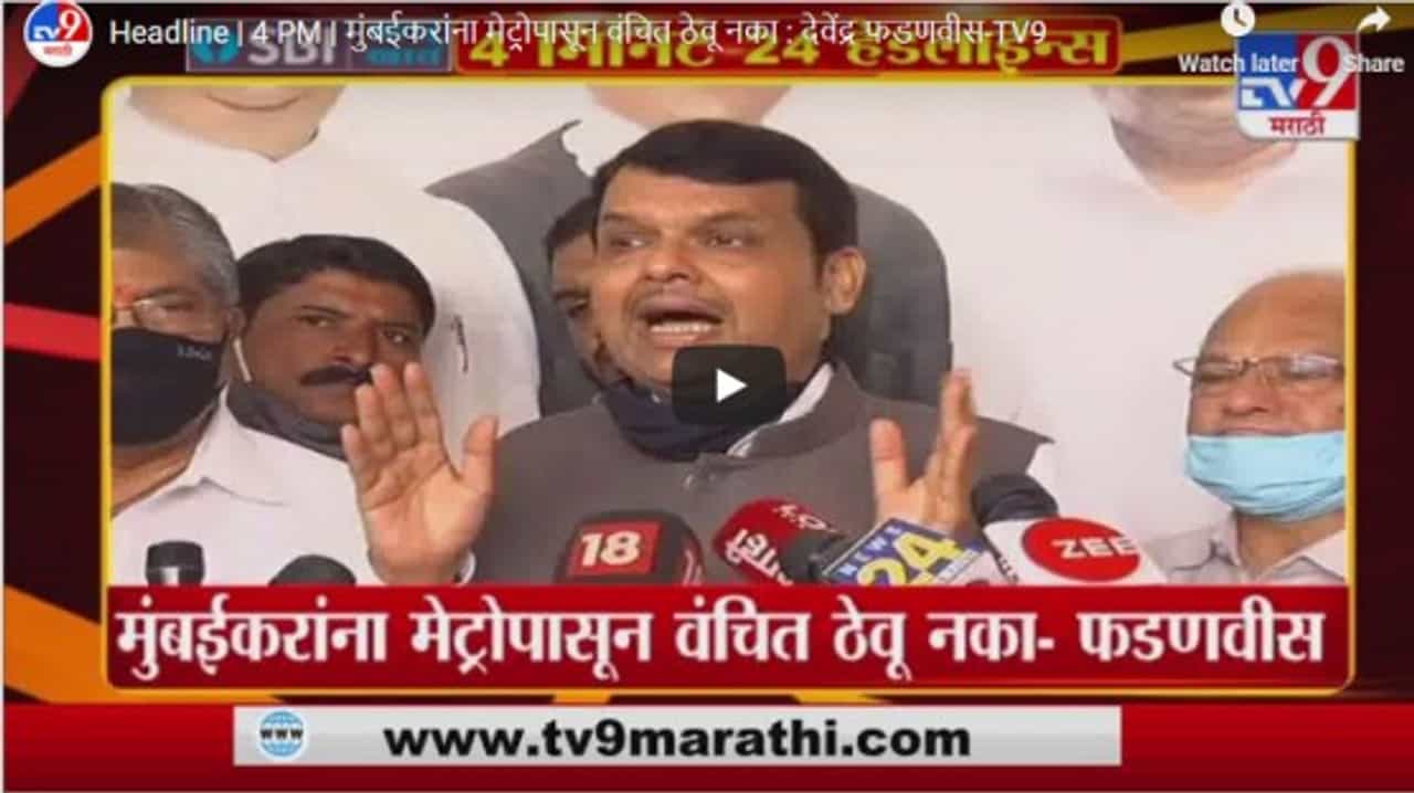 Headline | 4 PM | मुंबईकरांना मेट्रोपासून वंचित ठेवू नका : देवेंद्र फडणवीस