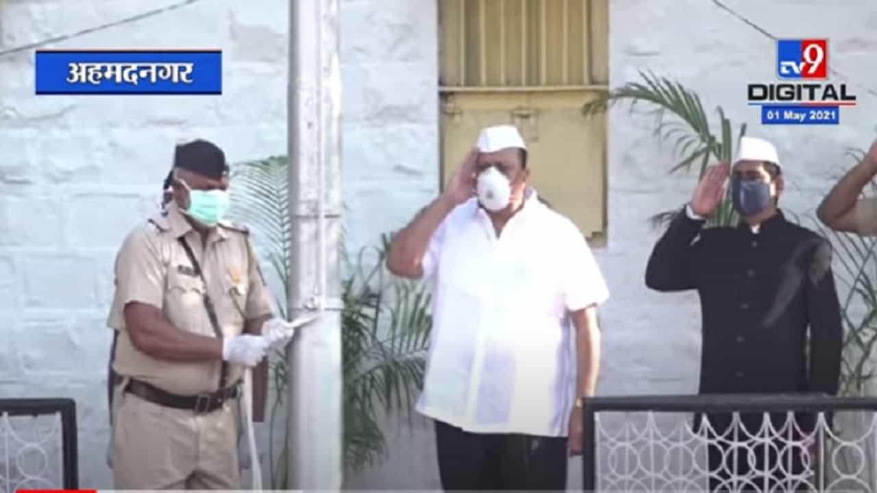 Maharashtra Day | Ahmednagar मध्ये पालकमंत्री Hasan Mushrif यांच्याहस्ते ध्वजारोहण