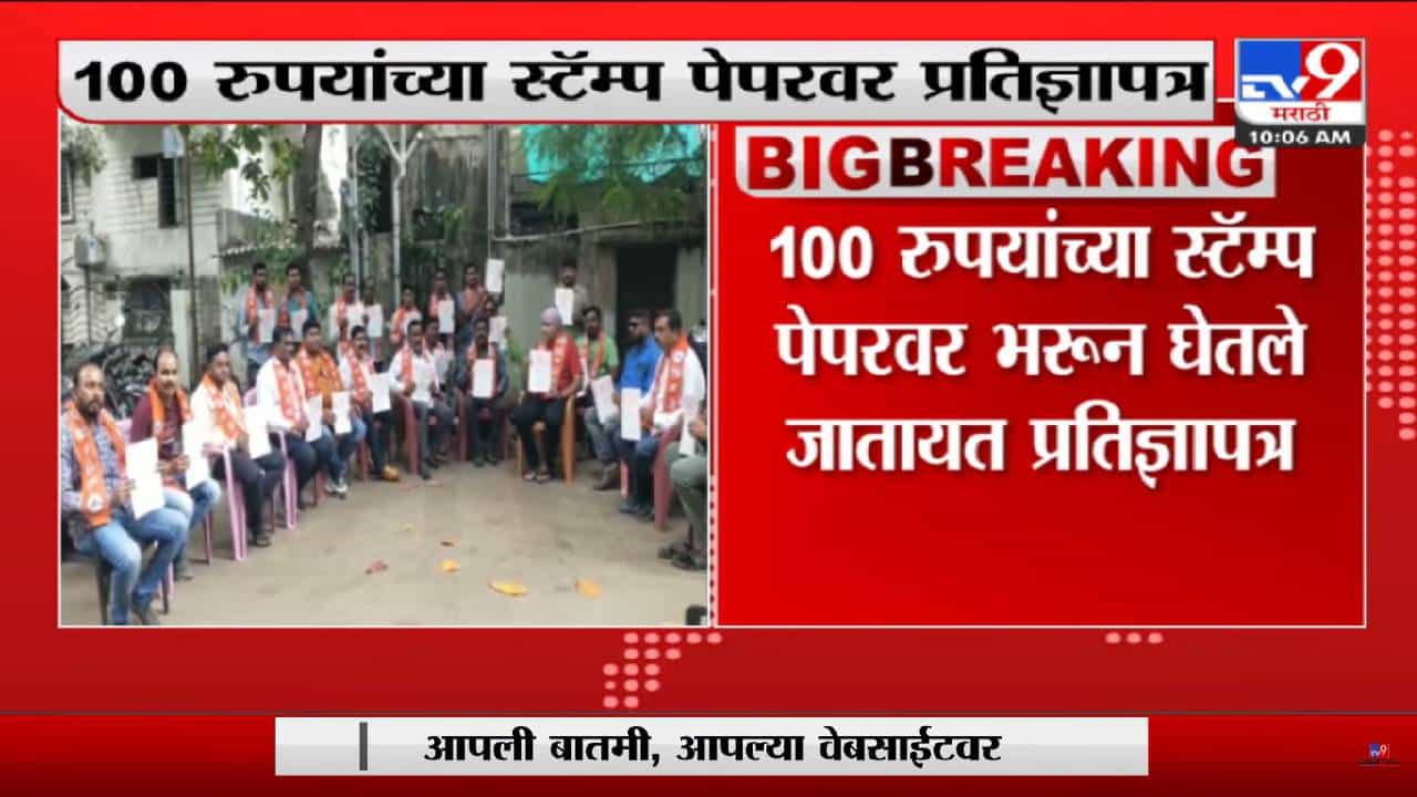 जळगाव: एकनाथ शिंदे (Eknath Shinde) यांनी बंड पुकारल्यानंतर शिवसेना दोन गटात विभागली असून एकनाथ शिंदे आणि उद्धव ठाकरे असे दोन गट पहायला मिळत आहे. जळगाव जिल्ह्यातही याचा परिणाम पहायला मिळत आहे. अनेक खासदार, आमदार आणि पदाधिकारी हे शिंदे गटाच्या वाटेवर आहे. पण, दुसरीकडे, निष्ठावंत शिवसैनिक (Shivsainik) अजूनही सेनेतच आहे. पक्षप्रमुख उद्धव ठाकरे यांना पाठिंबा दर्शवण्यासाठी जळगावात मोठ्या प्रमाणात 100 रुपयांच्या स्टॅम्प पेपरवर (Stamp Paper) शपथपत्र लिहून घेतले जात आहे. उध्दव ठाकरे यांचे समर्थक शिवसैनिक हे एकनाथ शिंदे यांच्या गटात सहभागी होवू नये म्हणून जळगावात शिवसेनेकडून मोठी काळजी घेतली जात आहे.