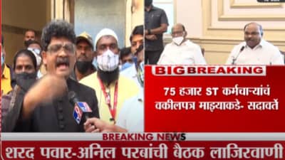 मुंबई : एसटी कर्मचाऱ्यांच्या संपावर तोडगा काढण्याच्या अनुशंगानं एक महत्त्वाची बैठक आज सह्याद्री अतिथी गृहावर पार पडली. या बैठकीत एसटी कर्मचाऱ्यांचे प्रतिनिधींनी शरद पवार आणि परिवहन मंत्री अनिल परब यांच्यासोबत चर्चा केली. प्रदीर्घ चर्चेनंतर या बैठकीबाबतची पत्रकार परिषद घेण्यात आली. या पत्रकार परिषदेत एसटी कर्मचाऱ्यांना तातडीनं रुजू होण्याचं आवाहन वेगवेगळ्या एसी कर्मचारी संघटनेच्या प्रतिनिधींनी केलं. इतकंच काय तर यावेळी एसटी कर्मचारी संघटनेच्या प्रतिनिधींनी गुणरत्न सदावर्ते यांच्यावरही निशाणा साधला.