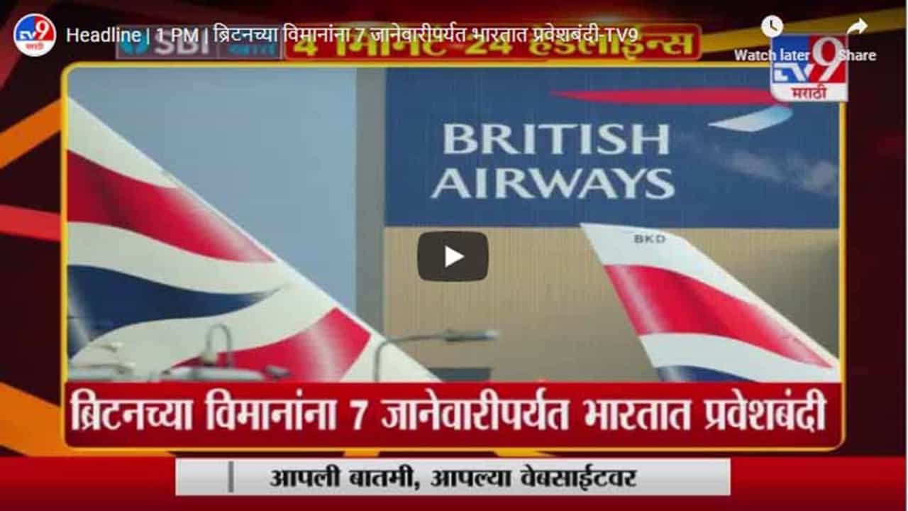 Headline | 1 PM | ब्रिटनच्या विमानांना 7 जानेवारीपर्यंत भारतात प्रवेशबंदी