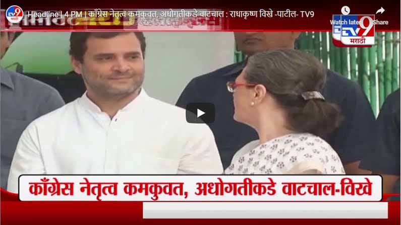 Headline | 4 PM | काँग्रेस नेतृत्व कमकुवत, अधोगतीकडे वाटचाल : राधाकृष्ण विखे -पाटील